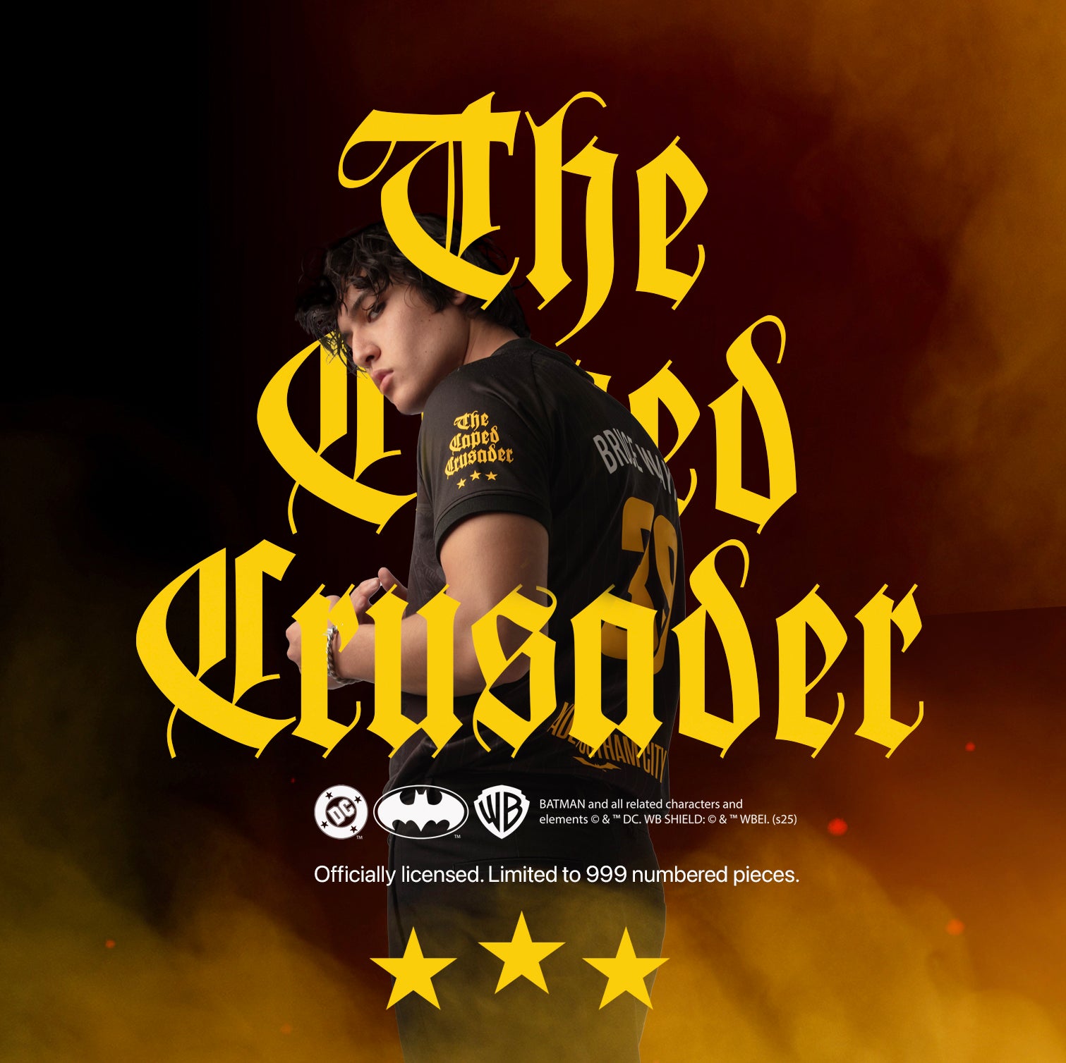 Forged in shadow. The Batman jersey strikes with Gotham-black fabric lit by bold yellow contrasts. “MADE BY GOTHAM CITY” and “The Caped Crusader” are etched into the details, while the number 39 marks the origin of a legend. Limited to 999. Built for the night.